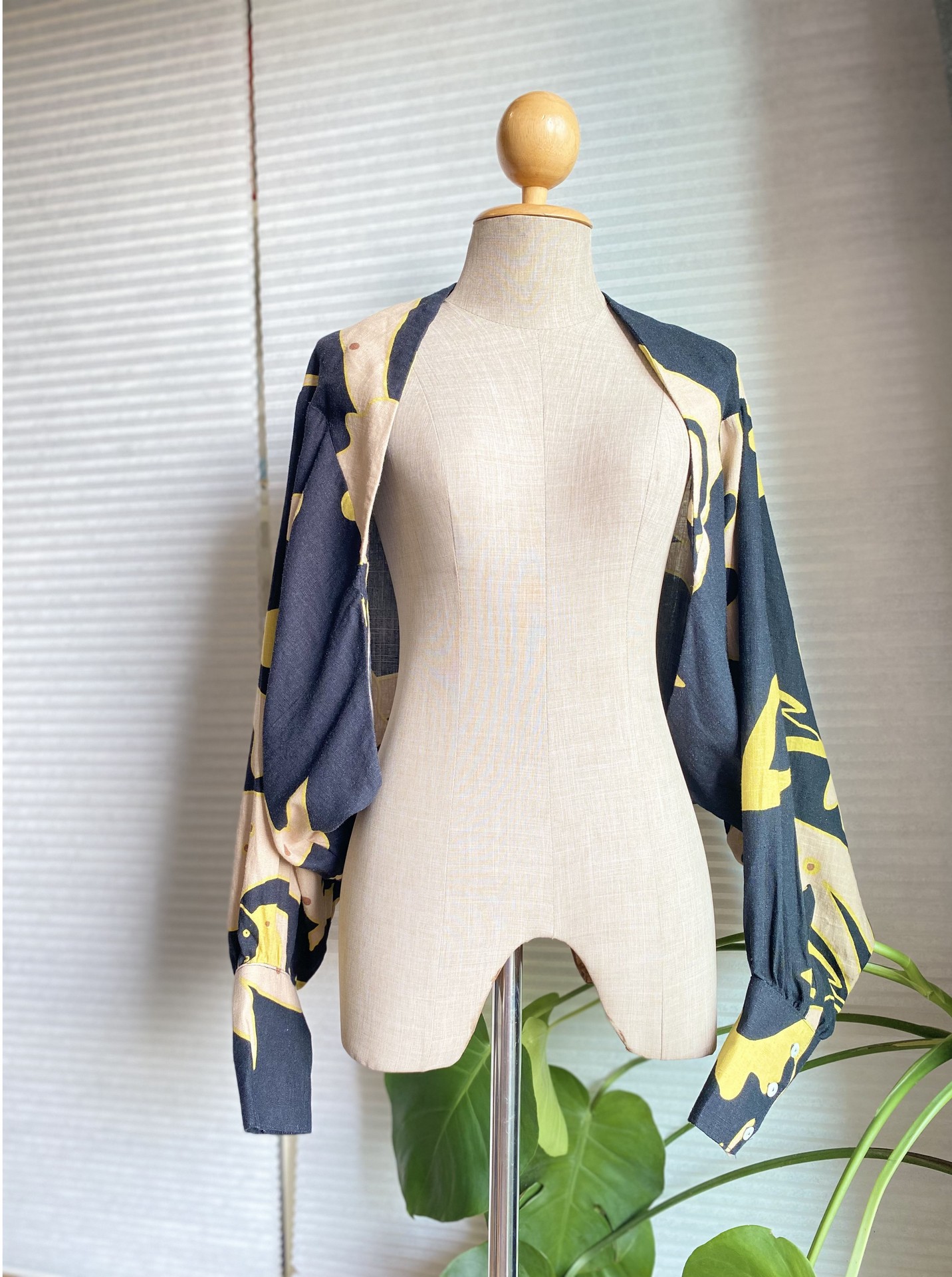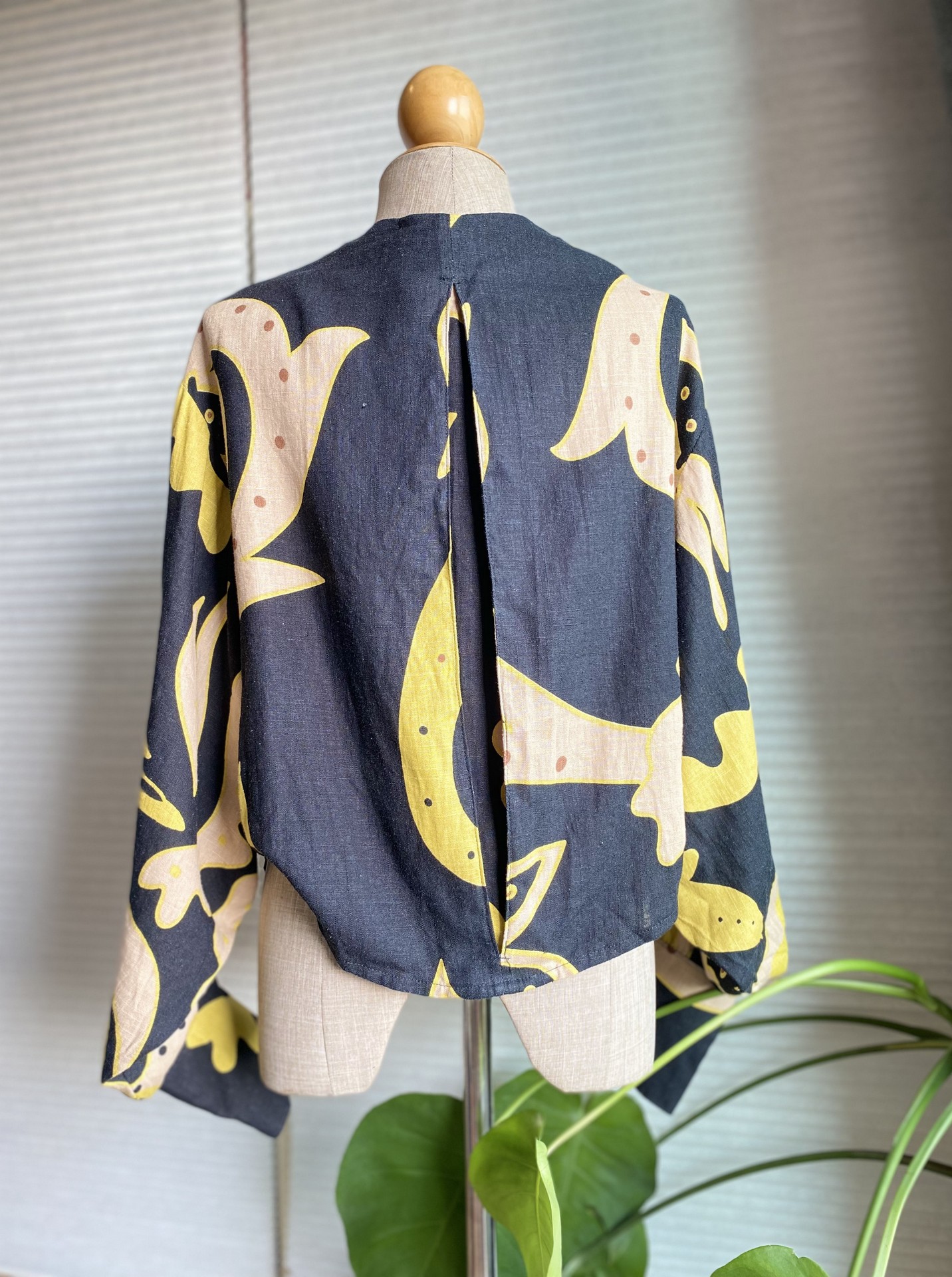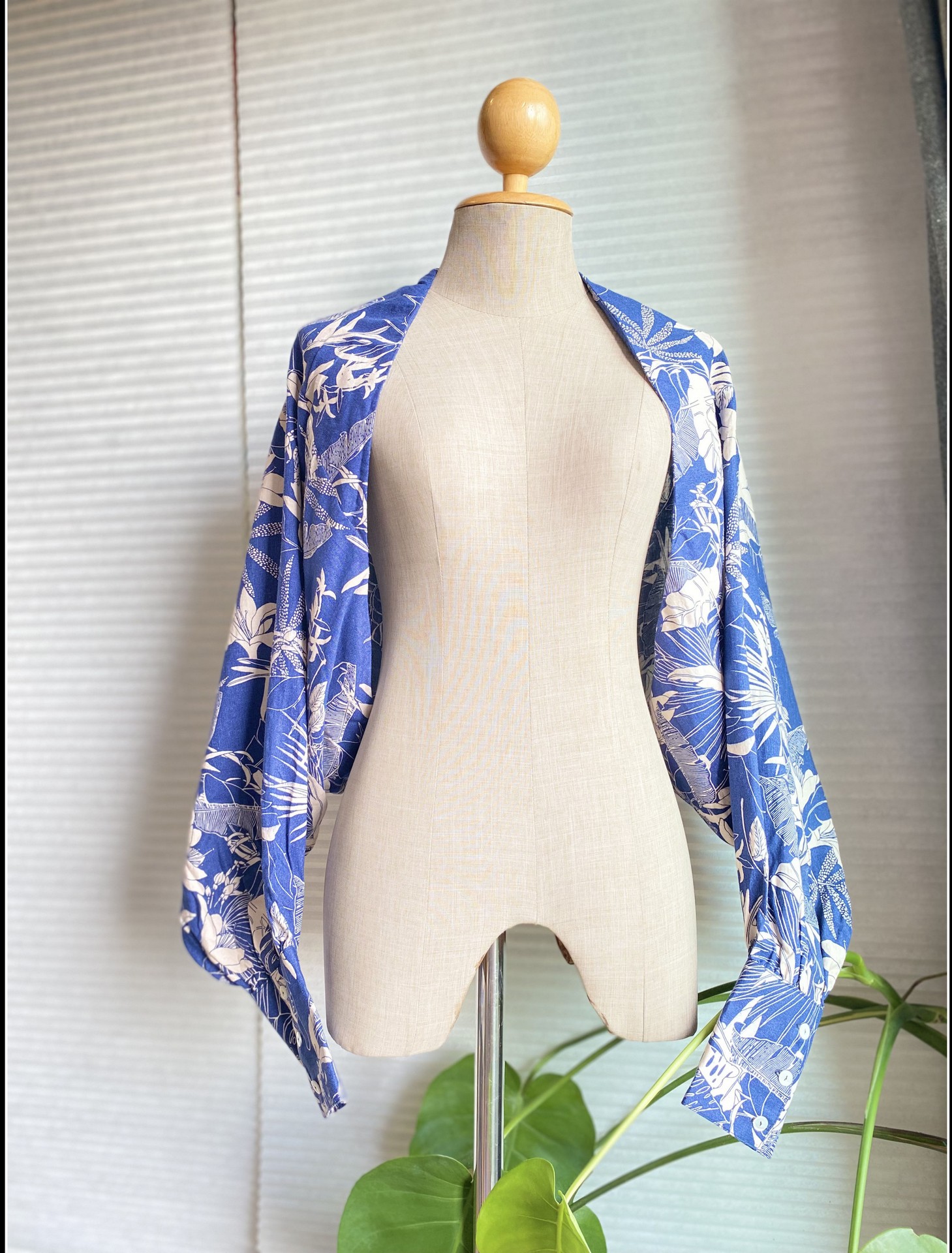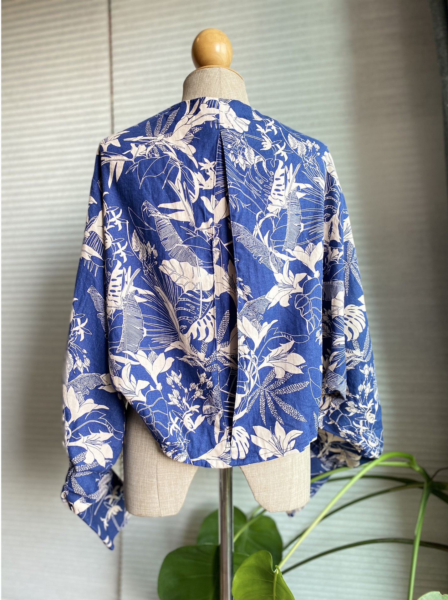 เสื้อคลุมครอปพิมพ์ลาย สีน้ำเงิน