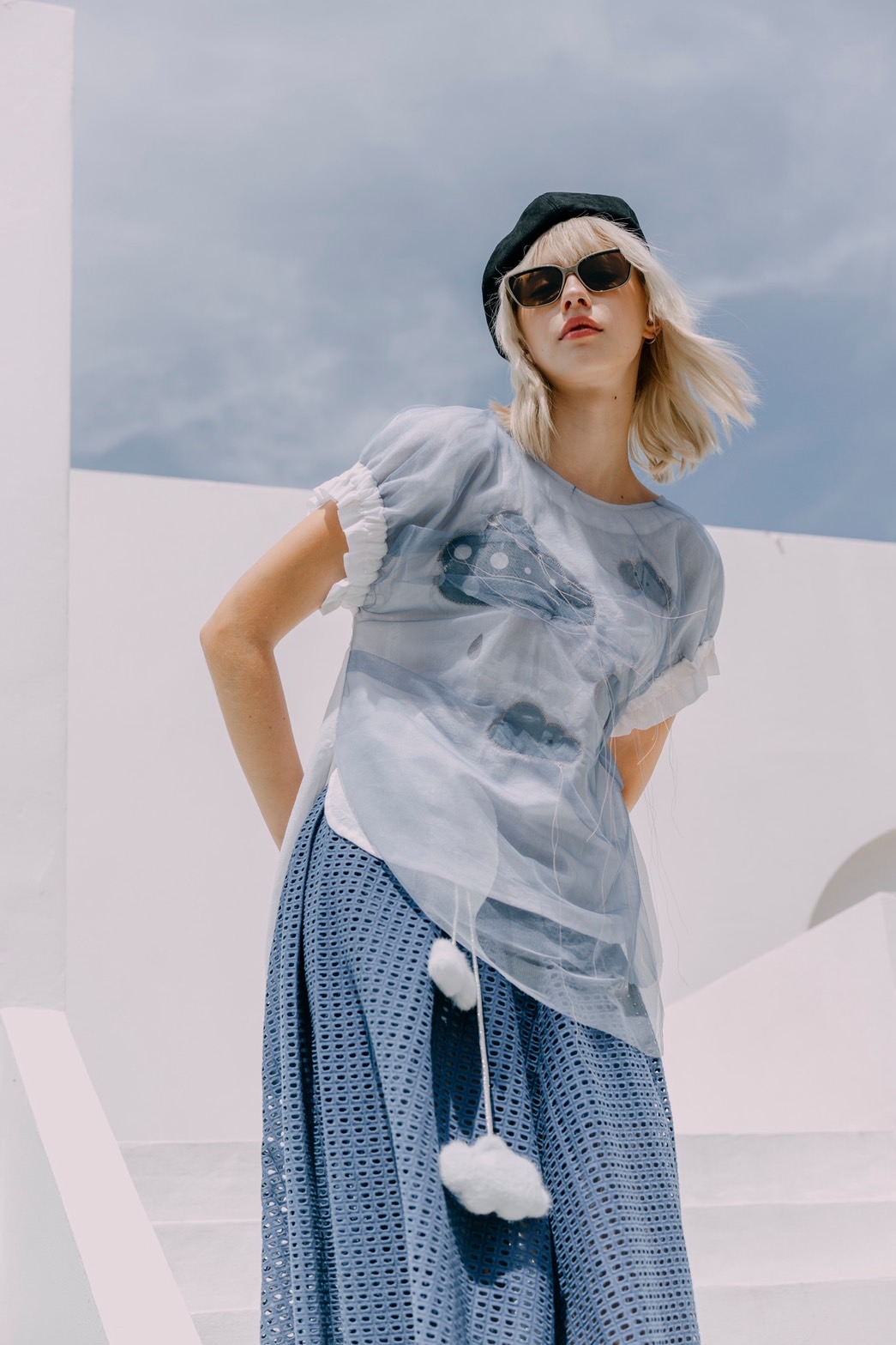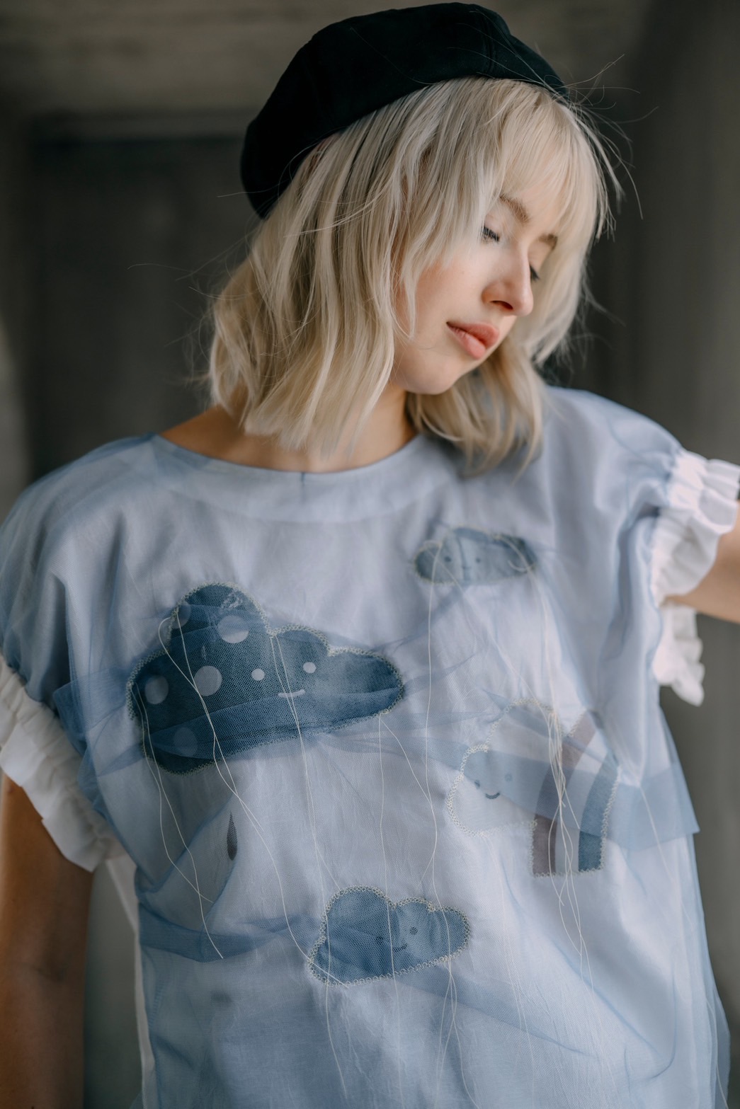 Rainlight Cloud Top with Sheer Overlay #01